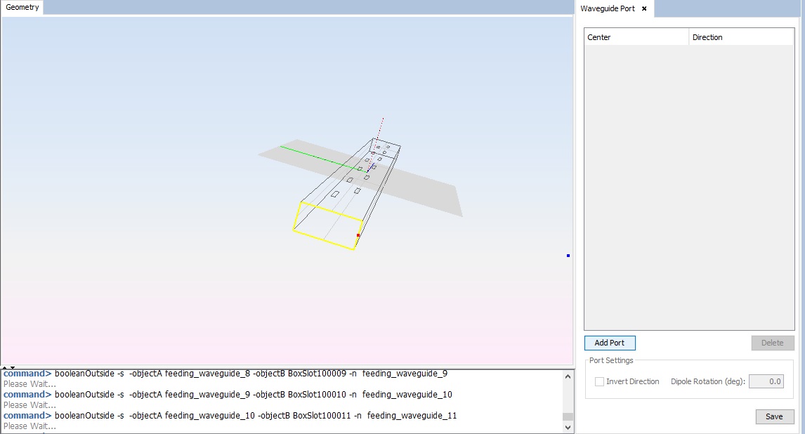 Click on the waveguide menu and Select Source --> Waveguides--> Add Waveguide Port option on the menu bar and add the port.