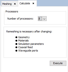 Select Calculate --> Execute option to open simulation parameters. Then select the number of processors as the next figure show. In order to obtain the shortest possible time for calculating the results, it is recommended to run the process with the number of physical processors available to the machine.
