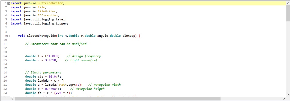 Select Tools --> User Functions option on the menu bar and open the function SlottedWaveguide.java.