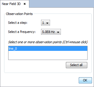 On 'Show Results --> Near Field' menu, other results are present such as 'View Cuts by Step' and 'View Cuts by Frequency' and this option display the values for one selected point for each step or frequency.