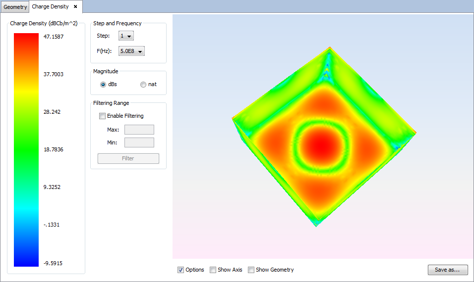Figure 26. Charge Density for step 1 and frequency 0.5 GHz