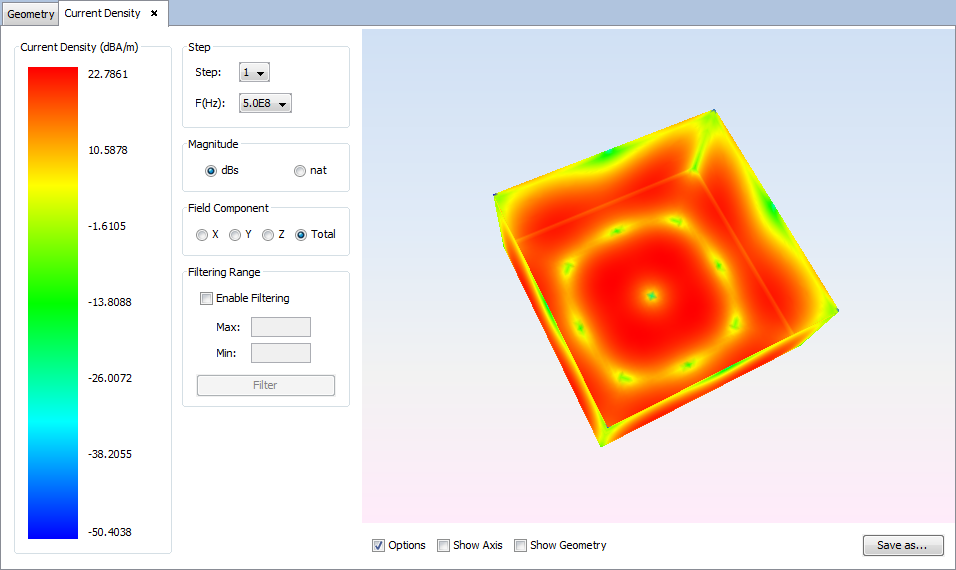 Figure 24. Current Density for step 1 and frequency 0.5 GHz