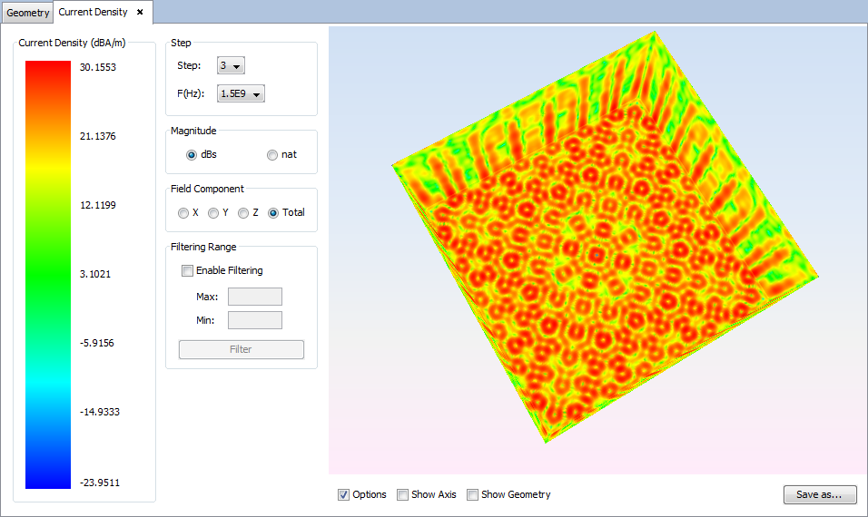 Figure 25. Current Density for step 3 and frequency 1.5 GHz