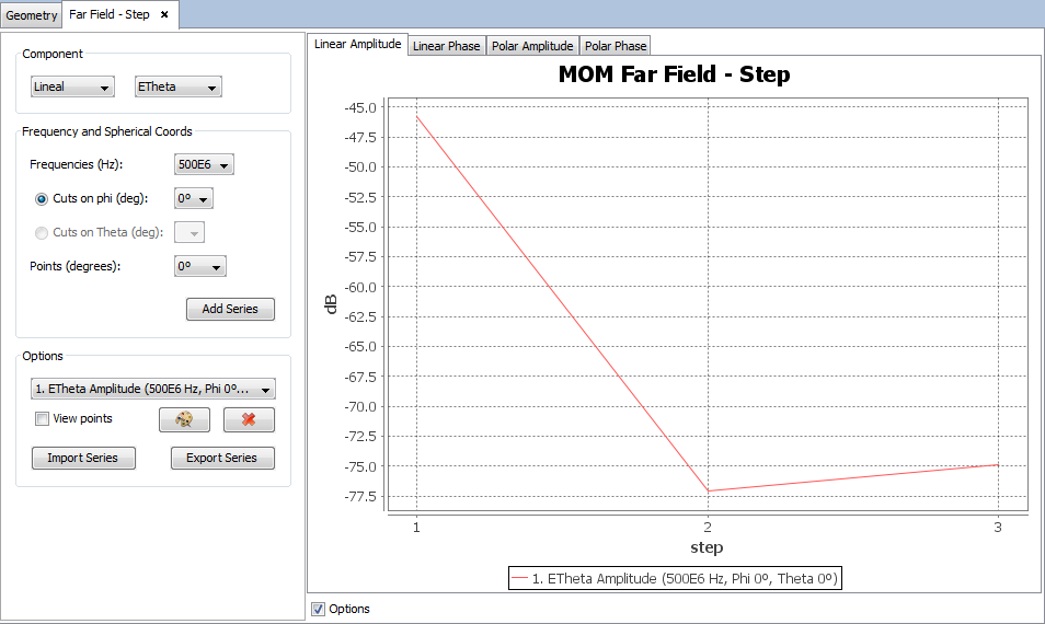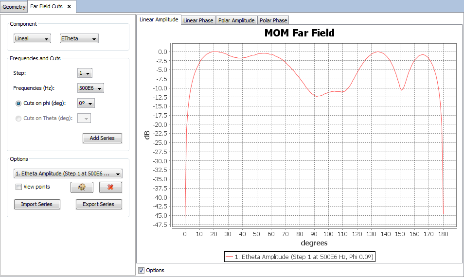 Selecting other values for the component, step, frequency or cut parameters and clicking on 'Add Series' button a new cut will be added to the selected parameters.