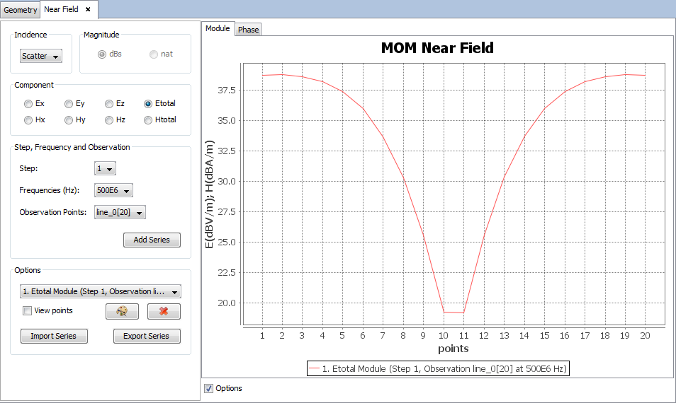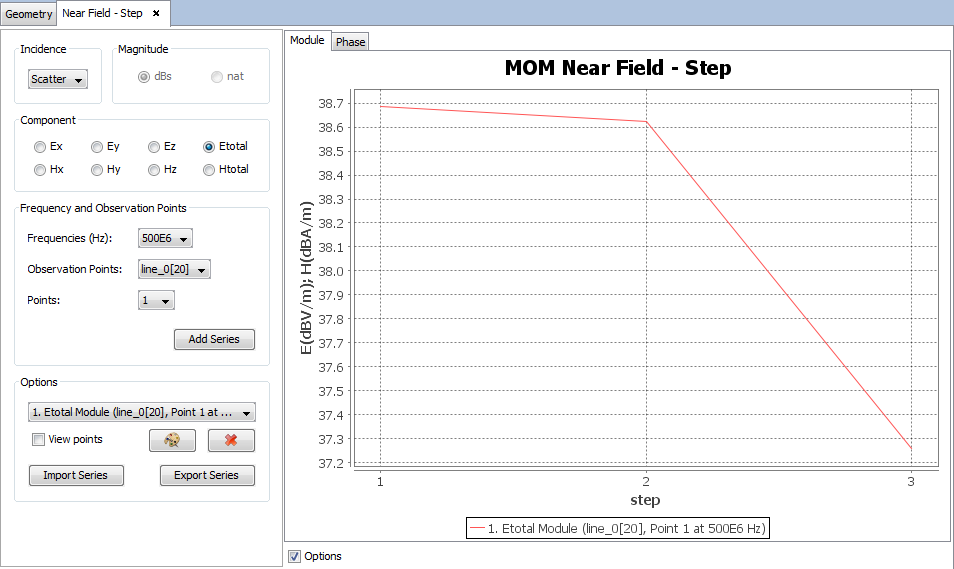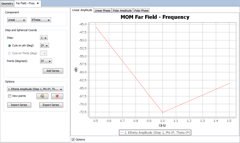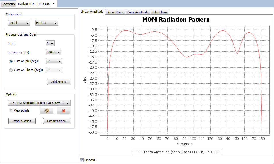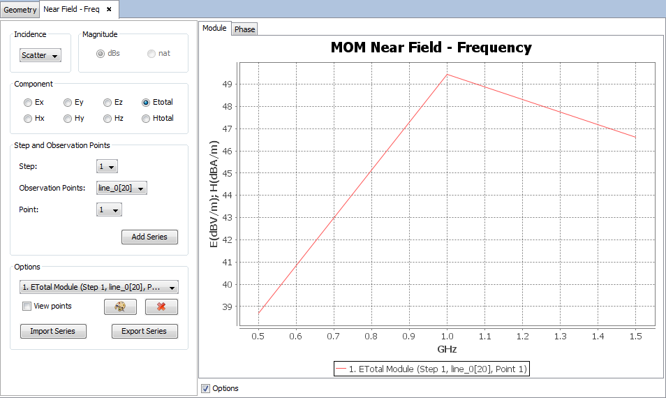 Selecting other values for incidence, component, step, frequency or observation parameters and clicking on 'Add Series' button a new cut will be added for the selected parameters.