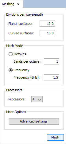 Select 'Meshing --> Parameters' to open the meshing configuration panel and then set the parameters as show the next figure. In order to obtain the shortest possible time for meshing,it is recommended to run the process of meshing with the number of physical processors available to the machine.