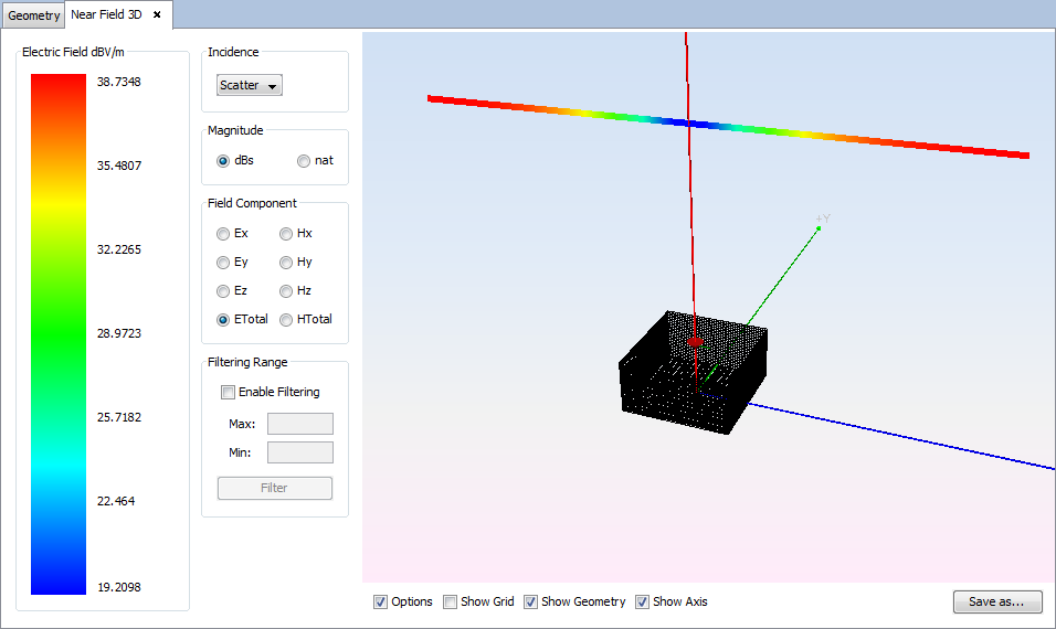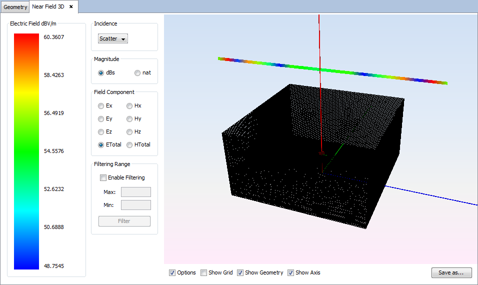 Changing values for incidence, magnitude, field or component parameters the visualization for the new parameters will be shown.