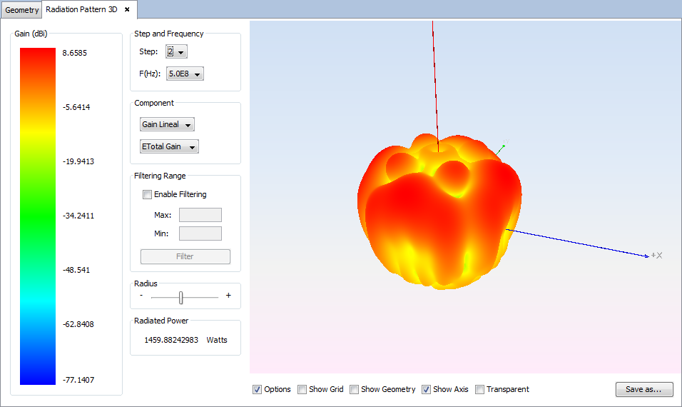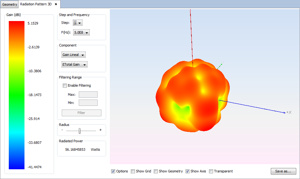 Figure 21. Radiation Pattern 3D for step 1 and frequency 0.5 GHz