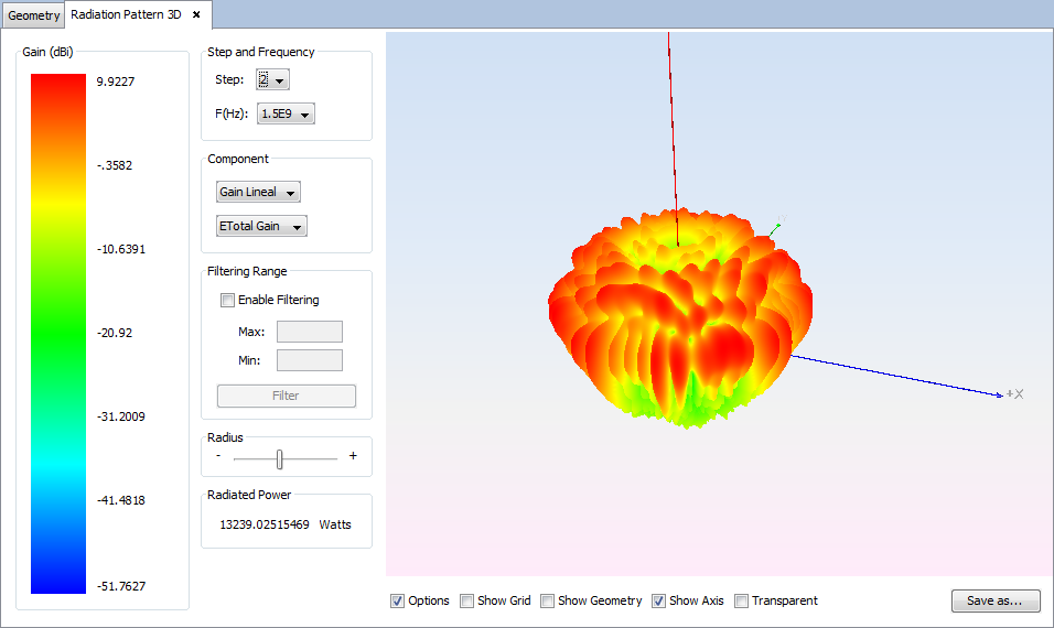 Figure 23. Radiation Pattern 3D for step 2 and frequency 1.5 GHz