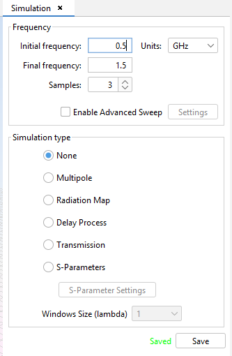 Select 'Simulation --> Parameters' option on the menu bar and the following panel appears. Set the parameters as the next figure shows and save it.