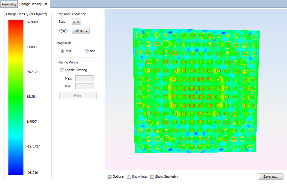 Select 'Show Results --> View Charges' option to show the charge density.