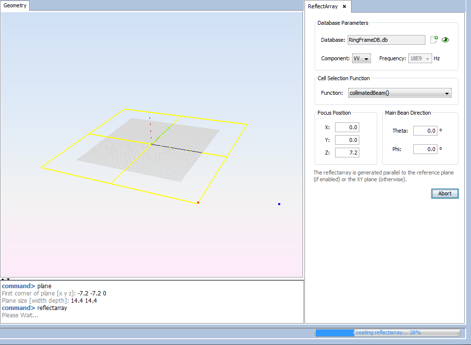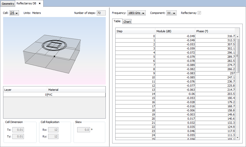 This case explains how to analyze a reflectarray layout. The database used in step 4 to create the reflectarray layout is the database created on section Annex 1: Creating a Reflectarray Database.