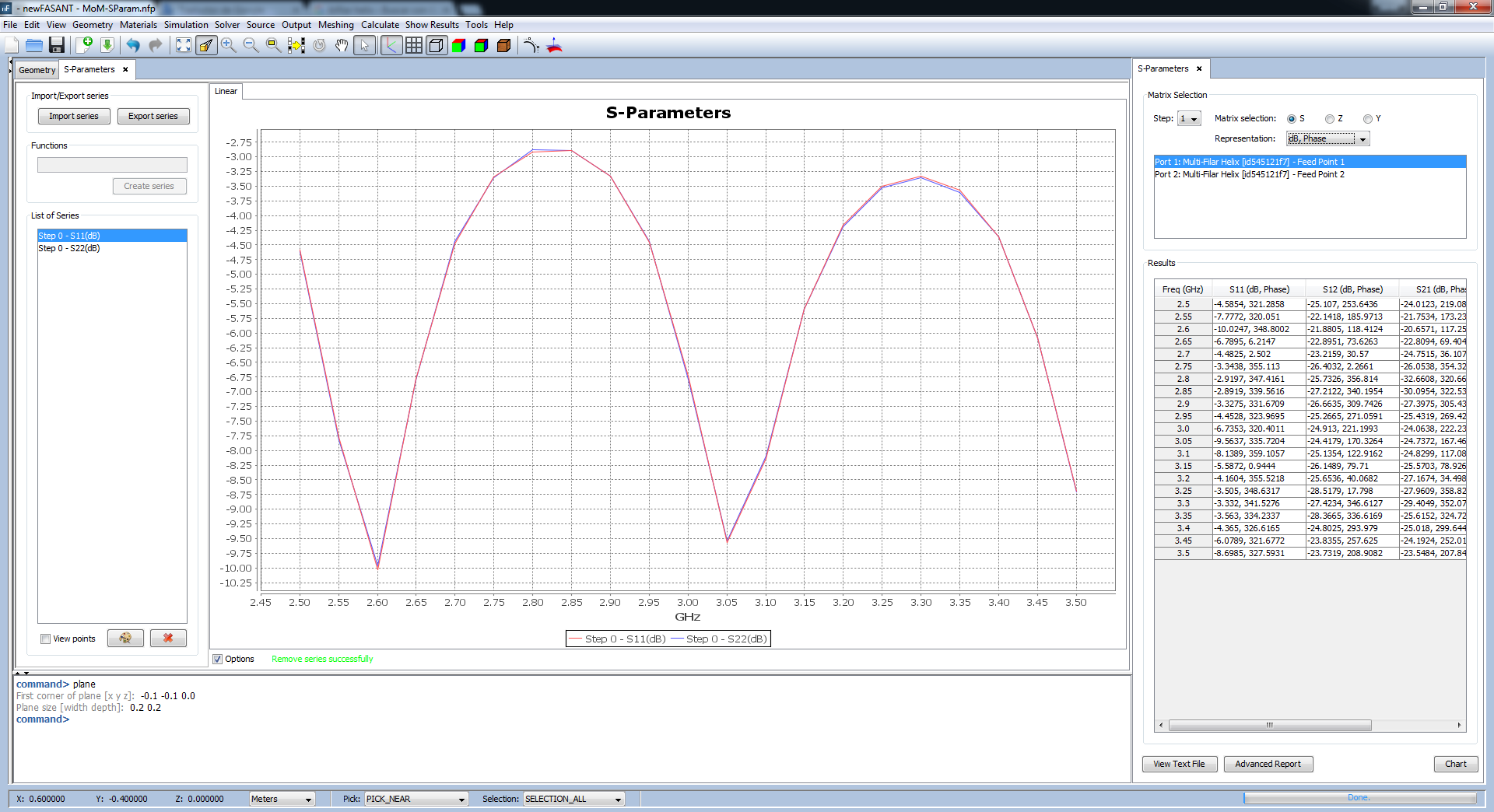 This case explains how to calculate the S-parameters of an bifilar helix antenna placed on a plane.