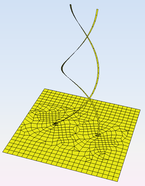 After the end of the meshing process, the meshes may be visualized by clicking on Meshing - Visualize Existing Mesh and select the mesh within any frequency folder. Then, you can verify that the mesh show the electrical continuity between the helix filaments and the ground plane, as shown in next figure.