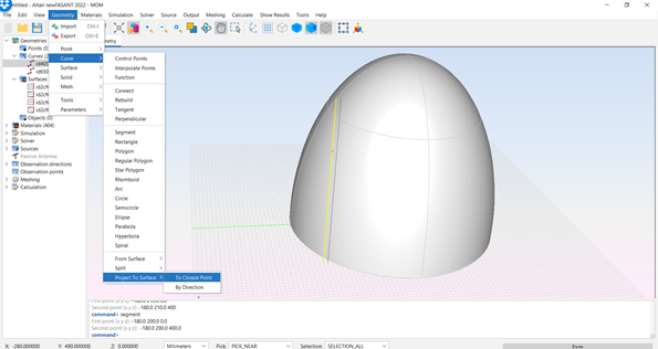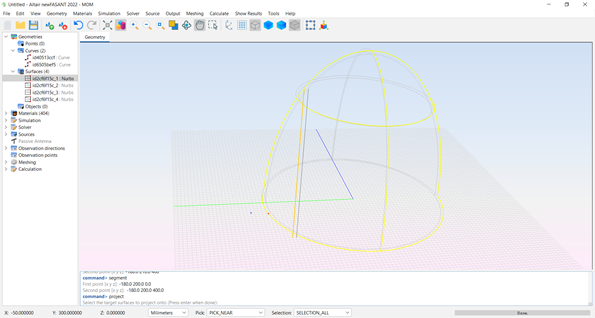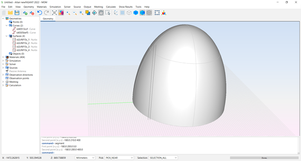 Figure 7. Obtain the surface of the strip - Define a radome. Note: The lightning strip protection is external to the radome.
