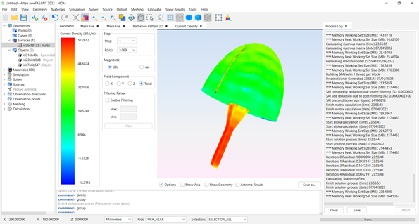 Figure 9. Radiation pattern of the radome plus strip - Visualize the currents.