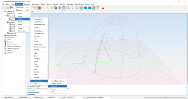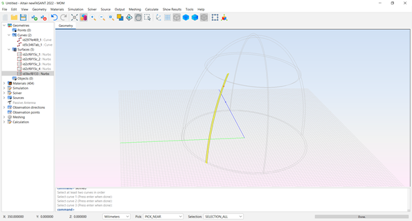 Figure 6. Select the lines - Obtain the surface of the strip conformed to the surface radome.