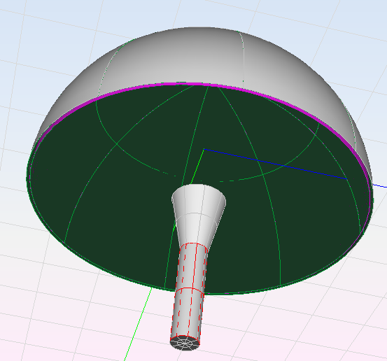 The next figure shows the final design of the radome with the horn, with the Material Shaded view. In this representation, we verify that the layers of the radome have the correct materials.