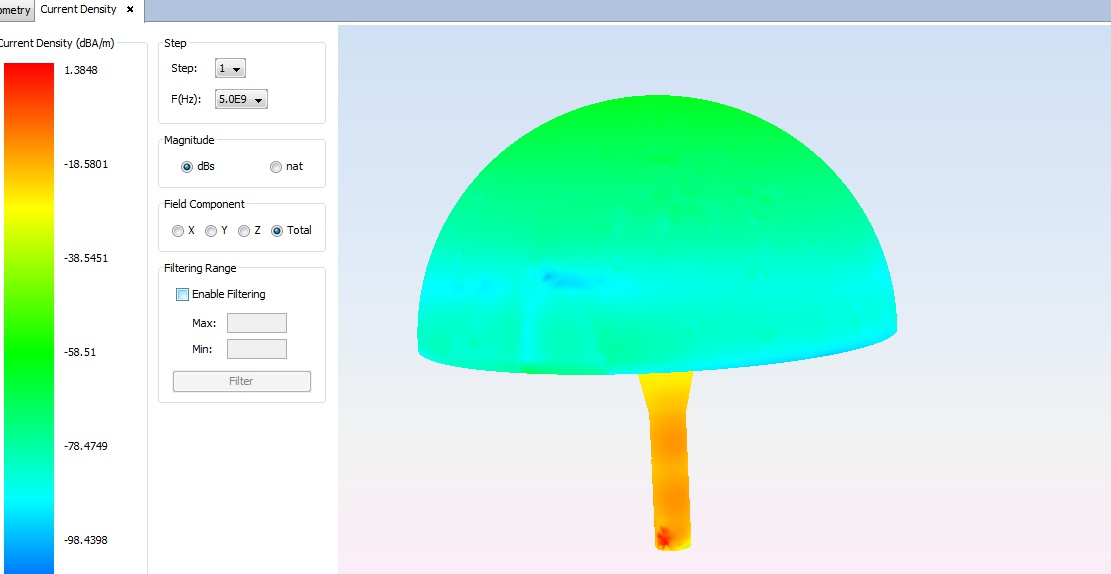 Figure 6. Current density - Step 1: 5.0e9 Hz - Step 2