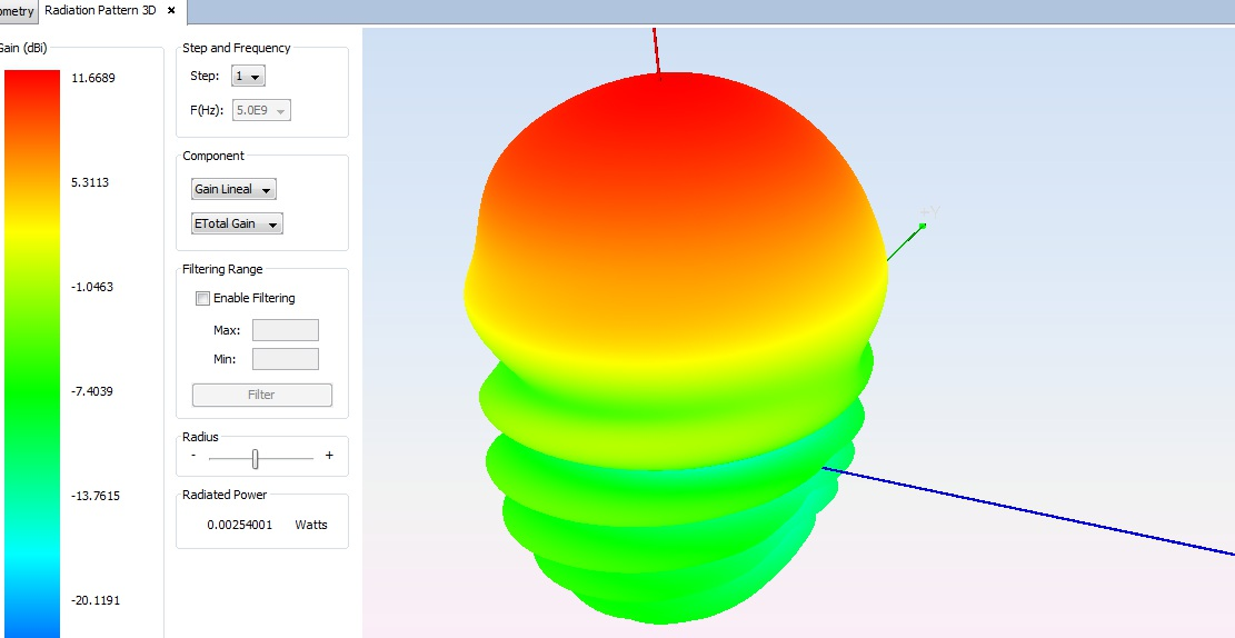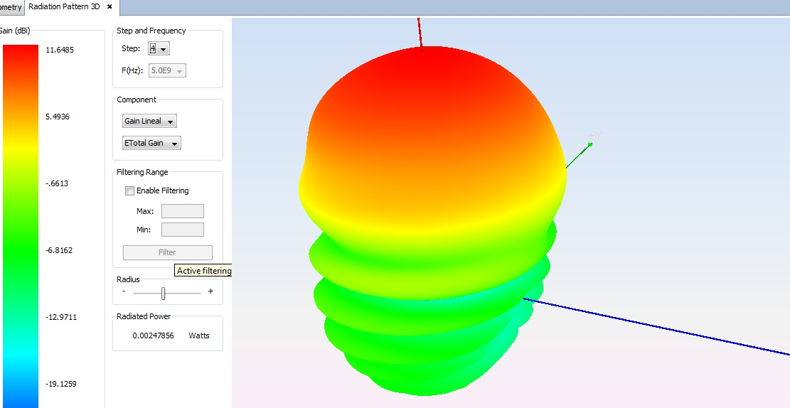 Figure 5. 3D radiation pattern - Step 5: 5.0e9 Hz
