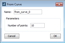 This option lets you select a line or curve of the main panel and sample it as observation points. The user has to previously select a NURBS Curve. Using the given NURBS curve the number of points to be added is a parameter.