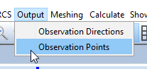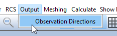 The Output menu lets the user modify observation directions and other settings related to the output generated by the simulation. The visible menu items will depend on the type of RCS simulation previously selected in the RCS menu.
