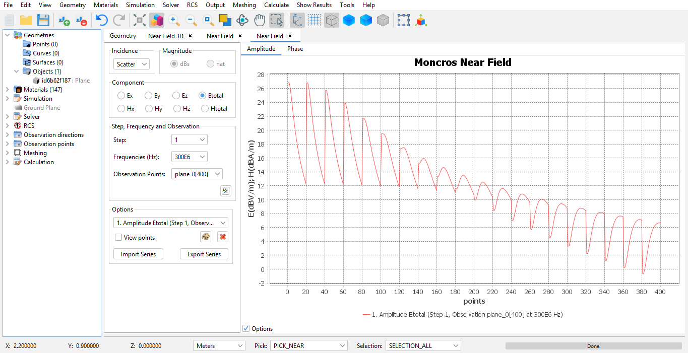 - Observation points: on simulation projects that make use of multiple observation point structures, the user can select one of the geometries.