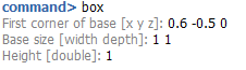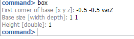 Select Geometry → Solid→ Box to define the box parameters as follows:
