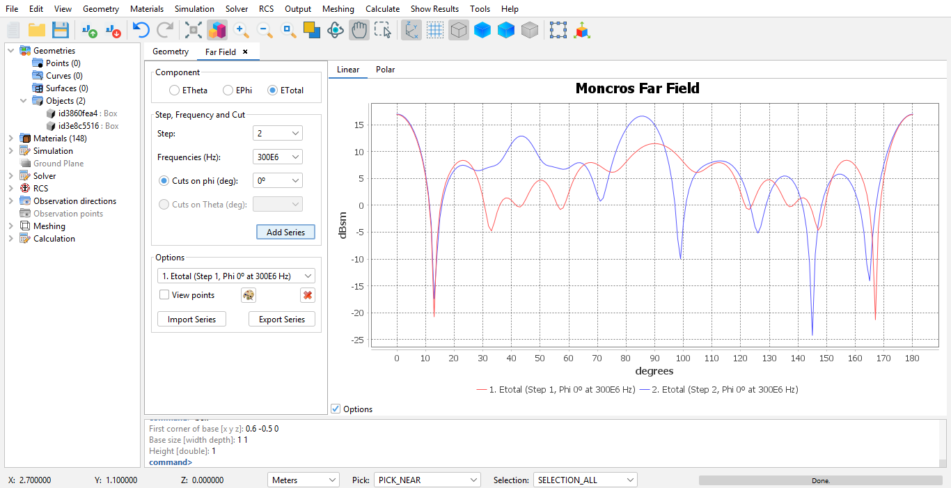 Select Show Results → Far Field→ View Cuts to visualize the far field values for the first step.