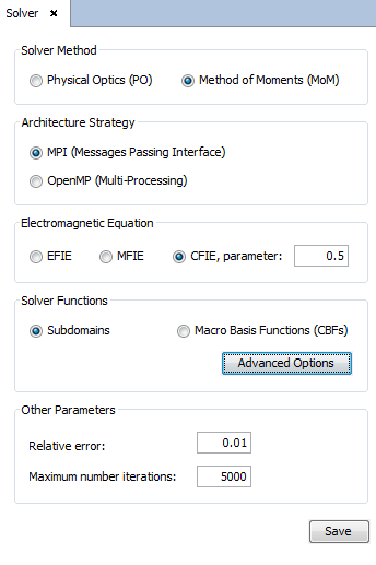 In the Simulation panel select a frequency of 0.3 GHz (default options) and press Save.