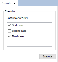 This menu contains only one option "Execute", which allows the execution of the simulation cases added to the project. When the user selects the "Execute" option, the following panel is shown: