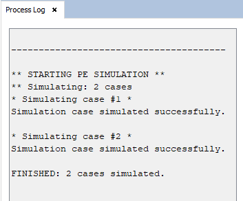 To perform the simulation, the user needs to click the "Execute" button. This will open the Process Log, which will show the state of the simulation.