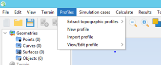 The first method of creating profiles has been explained in the previous section. It is possible to create a topographic profile from a text file or using the editor by using the options present in the "Profiles" menu.