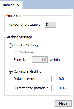 - Number of processors: To set the number of processors for the meshing process.