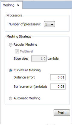 Select Meshing → Create Mesh. Select the appropriate number of processors available to run the meshing process as shown in the next Figure and left-click Mesh.
