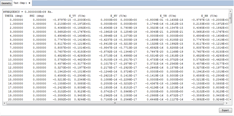 Click on Show Results → Far Field → View Text Files, to show the RCS data file. Select the step to obtain as a data file. Press OK to continue.