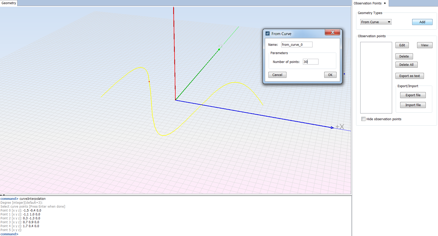Click on the "OK" button to insert the observation points from the curve, or abort the insertion by clicking on the "Cancel" button.