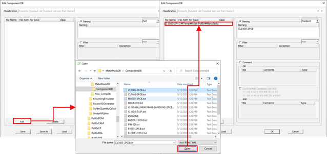 Metal Mask Manager’s database file, *.mmdb can detect component through component classification file, *.txt. Because of this reason, you need to prepare well-equipped component classification file data structure.