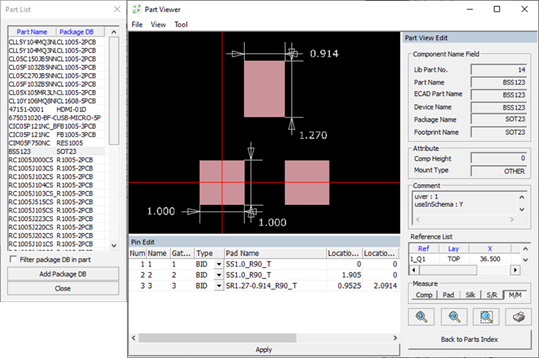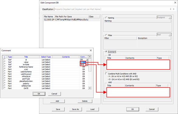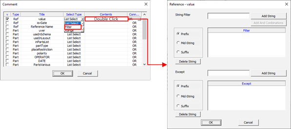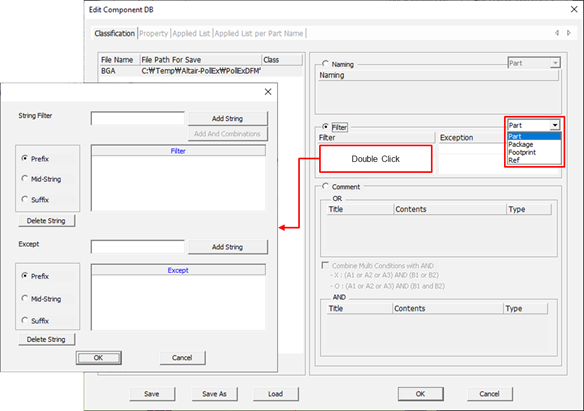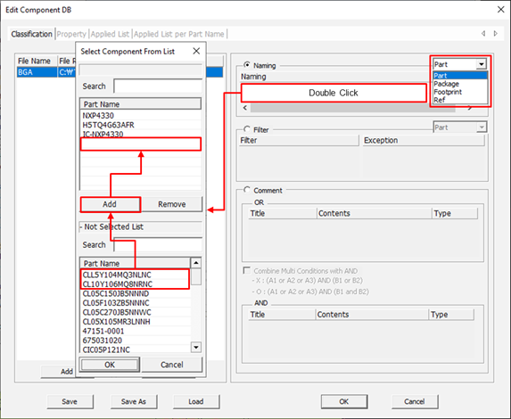 - Component Filter: Users can set the filter type to be used to select components among part name, package name, footprint name, device name and reference name.