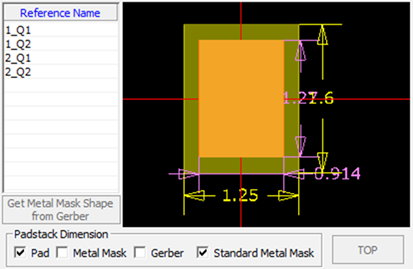 - Pad Stack: Padstack’s name which is not in standard metal mask.