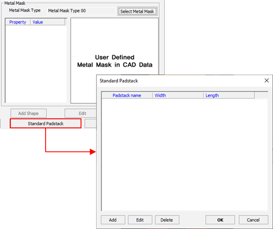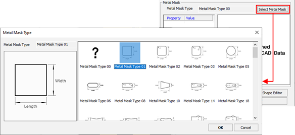 - Include Metal Mask from Cad Data for undefined Standard of Mask Design: Include Metal Mask shape on CAD data for the pad not registered in the Standard of Mask Design DB.