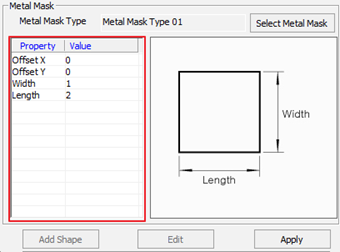 will not make standard metal mask shape. To do this purpose, use BOM Setting