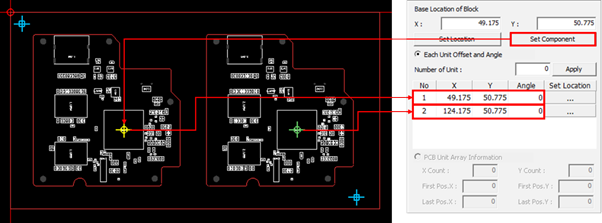 - X/Y: Set the base location of the unit PCB among the arranged unit PCBs.