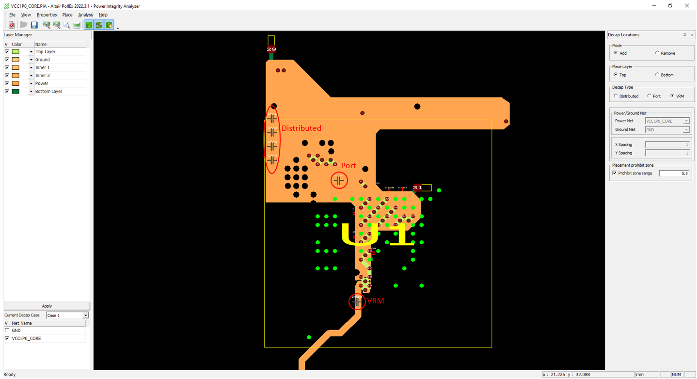 - Assign to Individual Decap Locations: Assign capacitor value by clicking each capacitor. This menu operates in toggle mode.