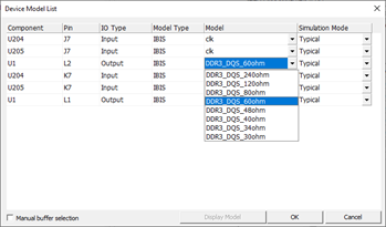 5. Device Models: For the selected active driver, actual driver model can be selectable among many different models in IBIS or Linear device model types. You can use one of available models considering the output impedance, driving capability measured by output current level and operating frequencies. These driver’s characteristics lead huge impact on the simulated waveforms.