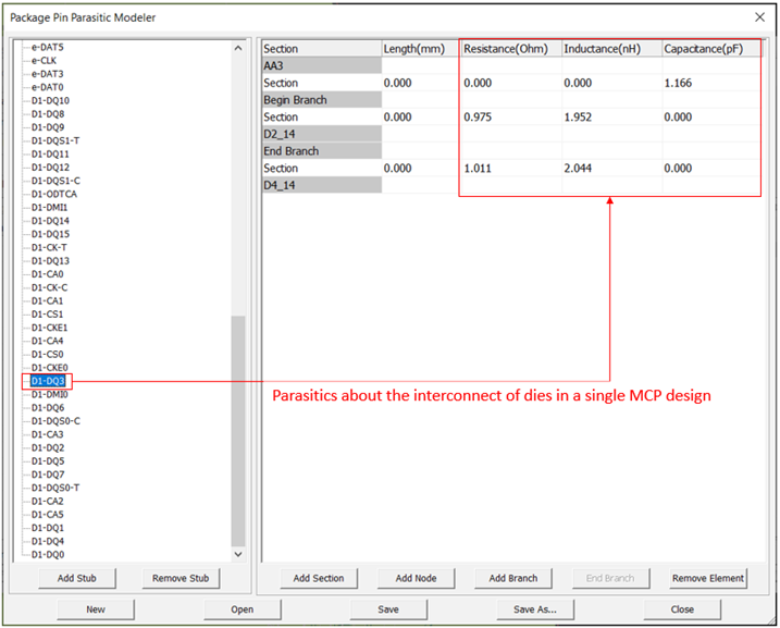 - Pin Parasitic file: This file provides information about the MCP's package pins, such as the pin capacitance, inductance, and resistance. Pin Parasitic files are used to model the parasitic effects of the package pins, which can impact the MCP's performance.