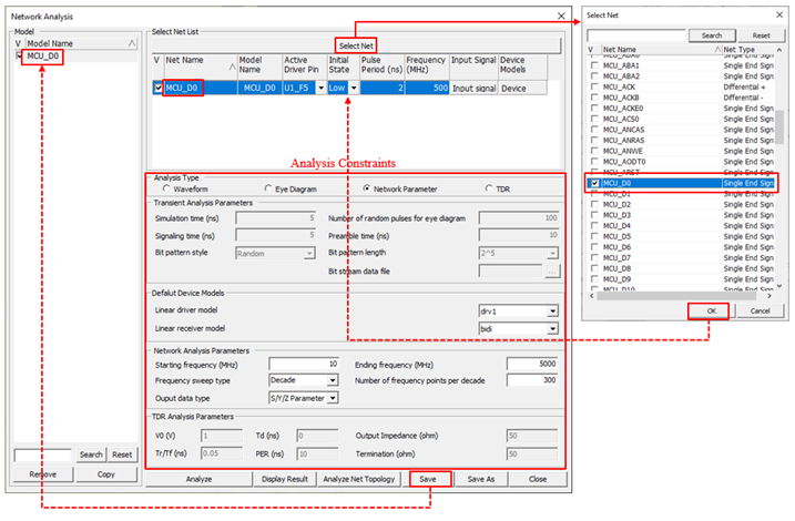 Use ADD/CMD/CTRL Line Analysis to analyze interconnect network of command and control group nets of DDR BUS in time