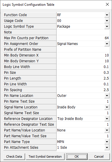 - Signal Name Location: Select the pin signal name location among Outer, On/Above/Below Pin Line and Inside of Body.