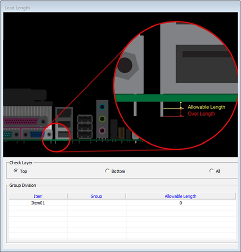 Checks the length of DIP type component’s lead. If it is much longer than the allowable length, PollEx DFA can detect it.