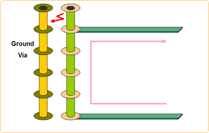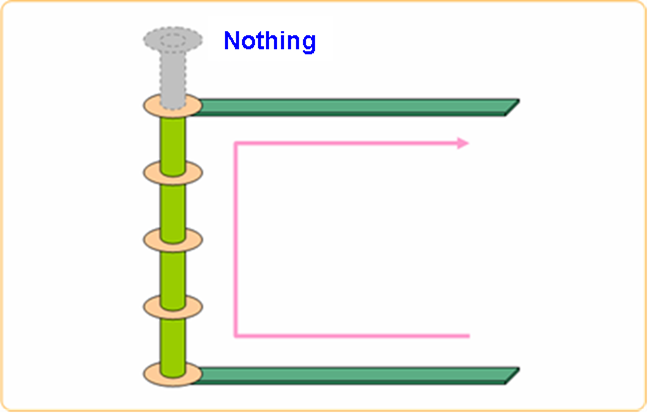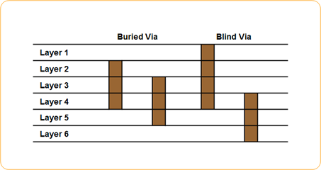 - This via exists only in inner layers. It cannot be visually observed from top or bottom. It is usually used in high speed signal board to prevent Power/Ground Cutting Effect and also give PCB designer additional spaces for routing.